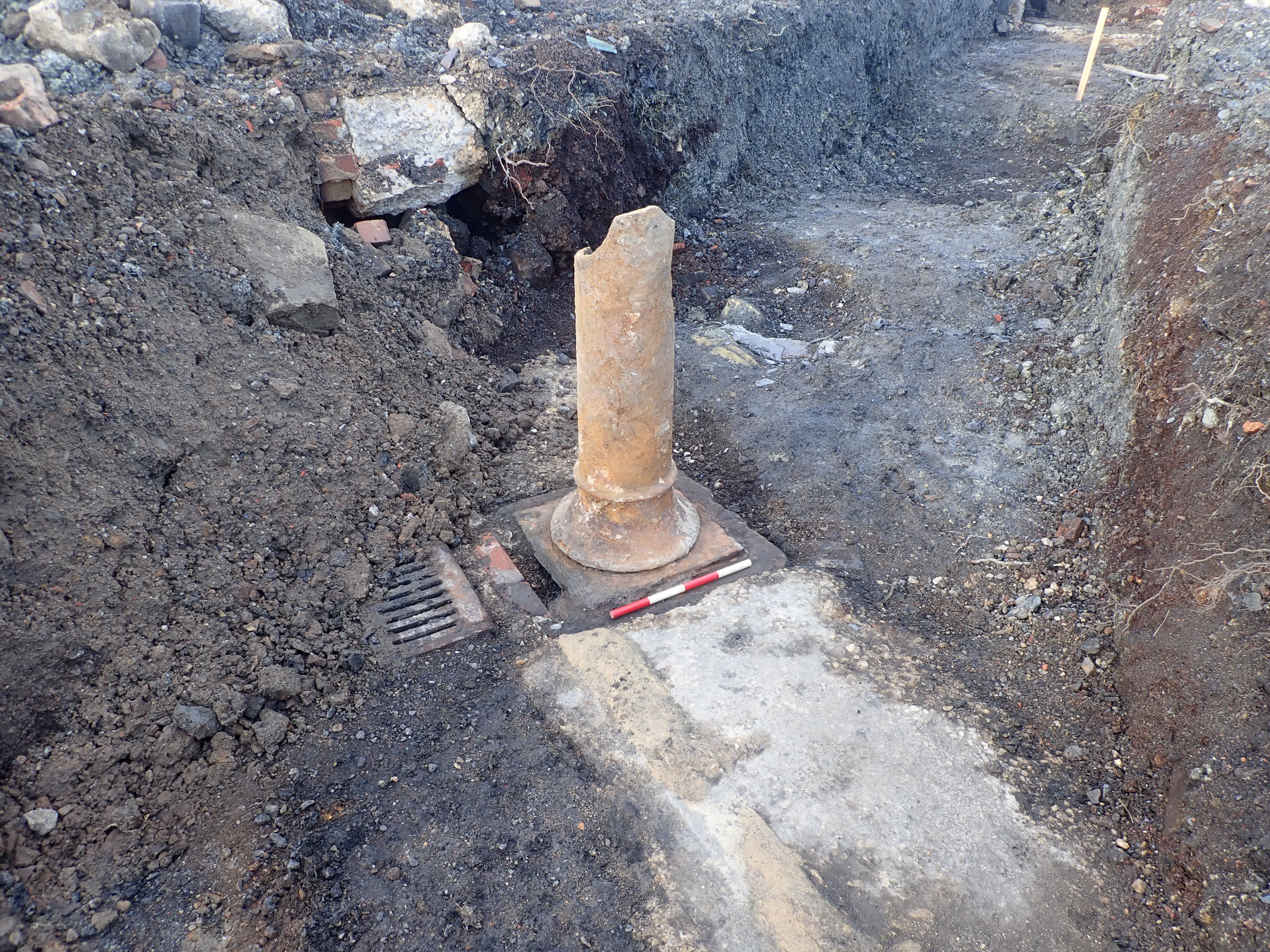 Remnants of one of the station’s huge cast iron pillars, which would once have held up the roof while passengers made their way around its platforms. The impressive iron columns also doubled as rainwater down pipes. Credit CFA Archaeology Limited.