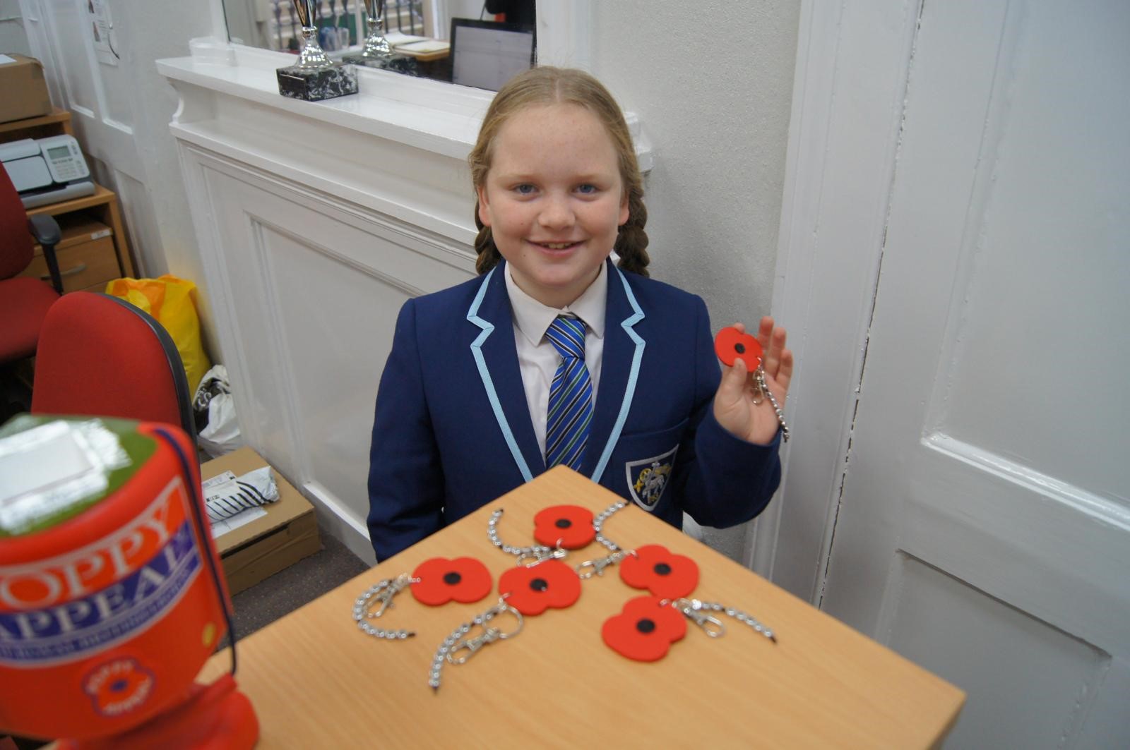 Winner of the 'Child/young person of the year' category of the Child Friendly Leeds Awards 2024, Leigh-Taylor Arundale, 14, pictured with some of her home-made poppy keyrings for the Poppy Appeal.