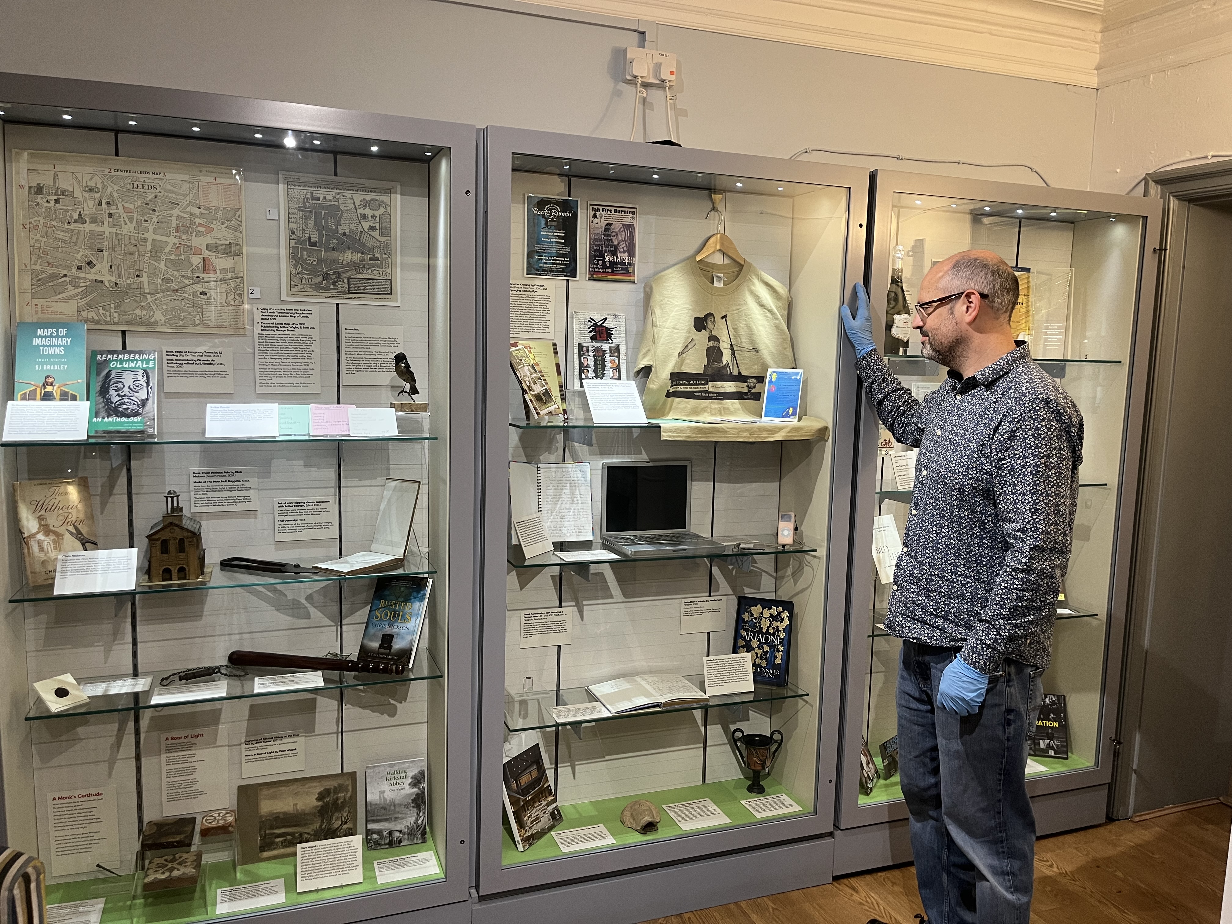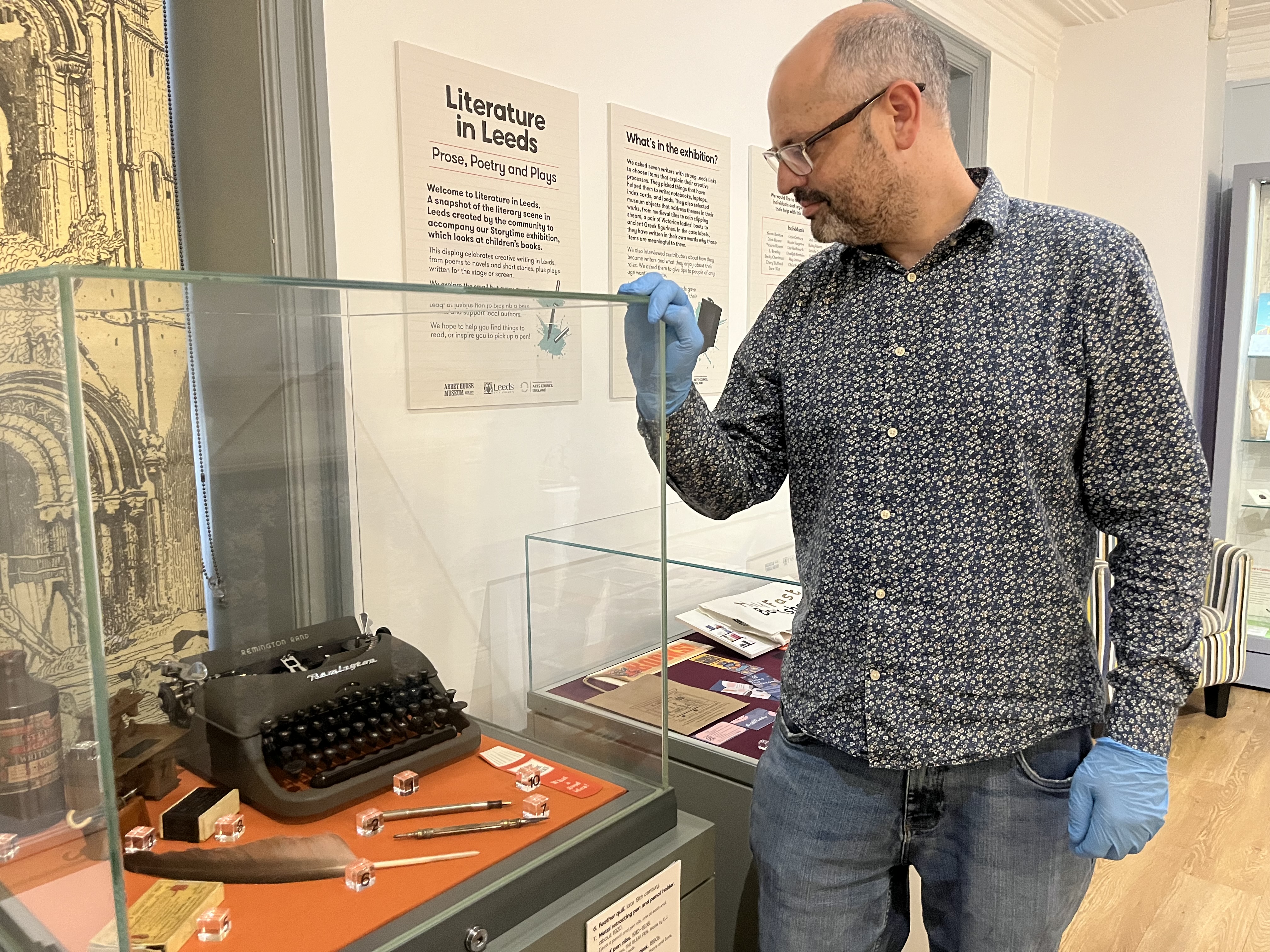 Curator Patrick Bourne with some of the exhibits which feature in Literature in Leeds at Kirkstall’s Abbey House Museum, which showcases objects, memorabilia and personal stories which have inspired a generation of modern-day writers to create works enjoyed by audiences around the world.