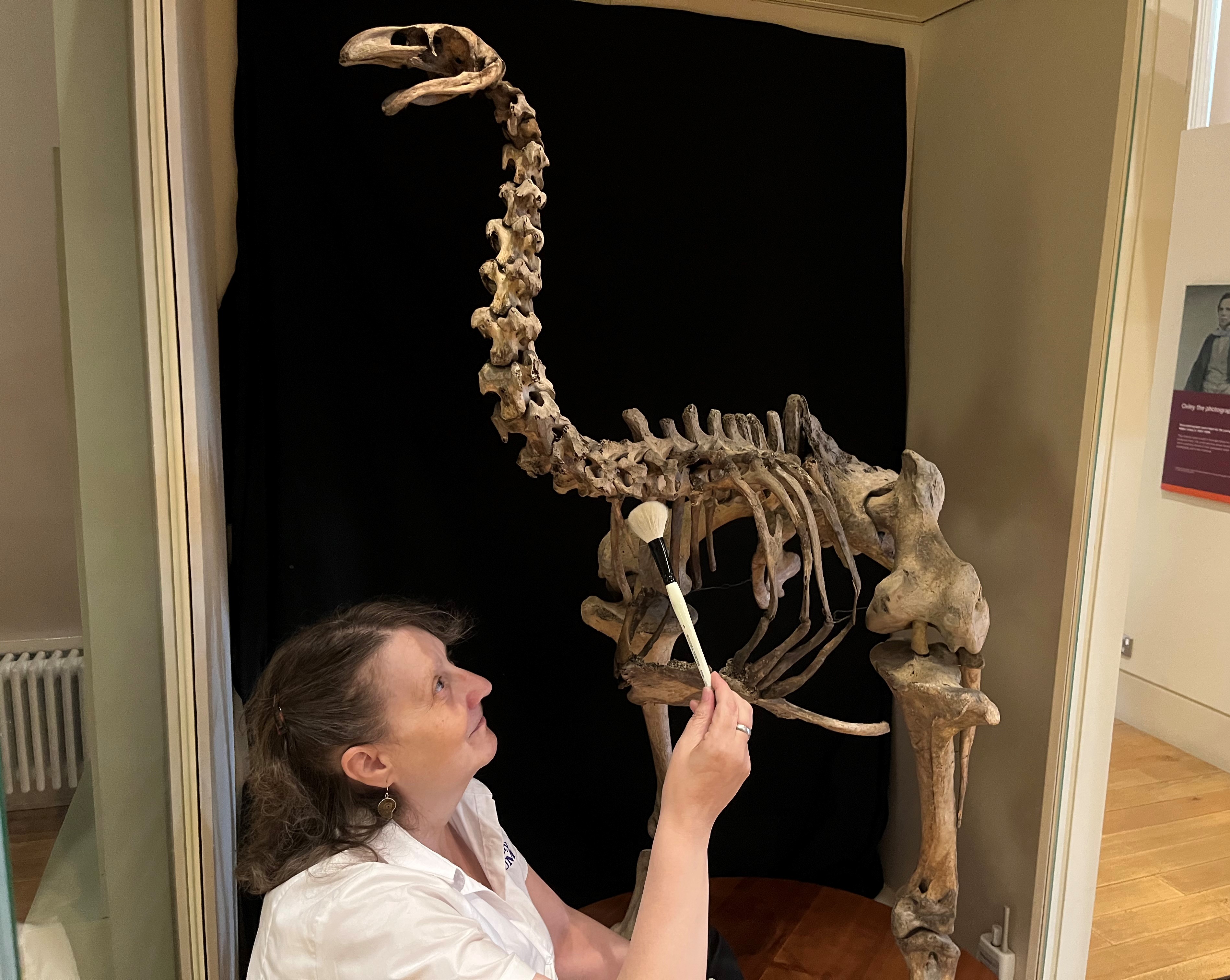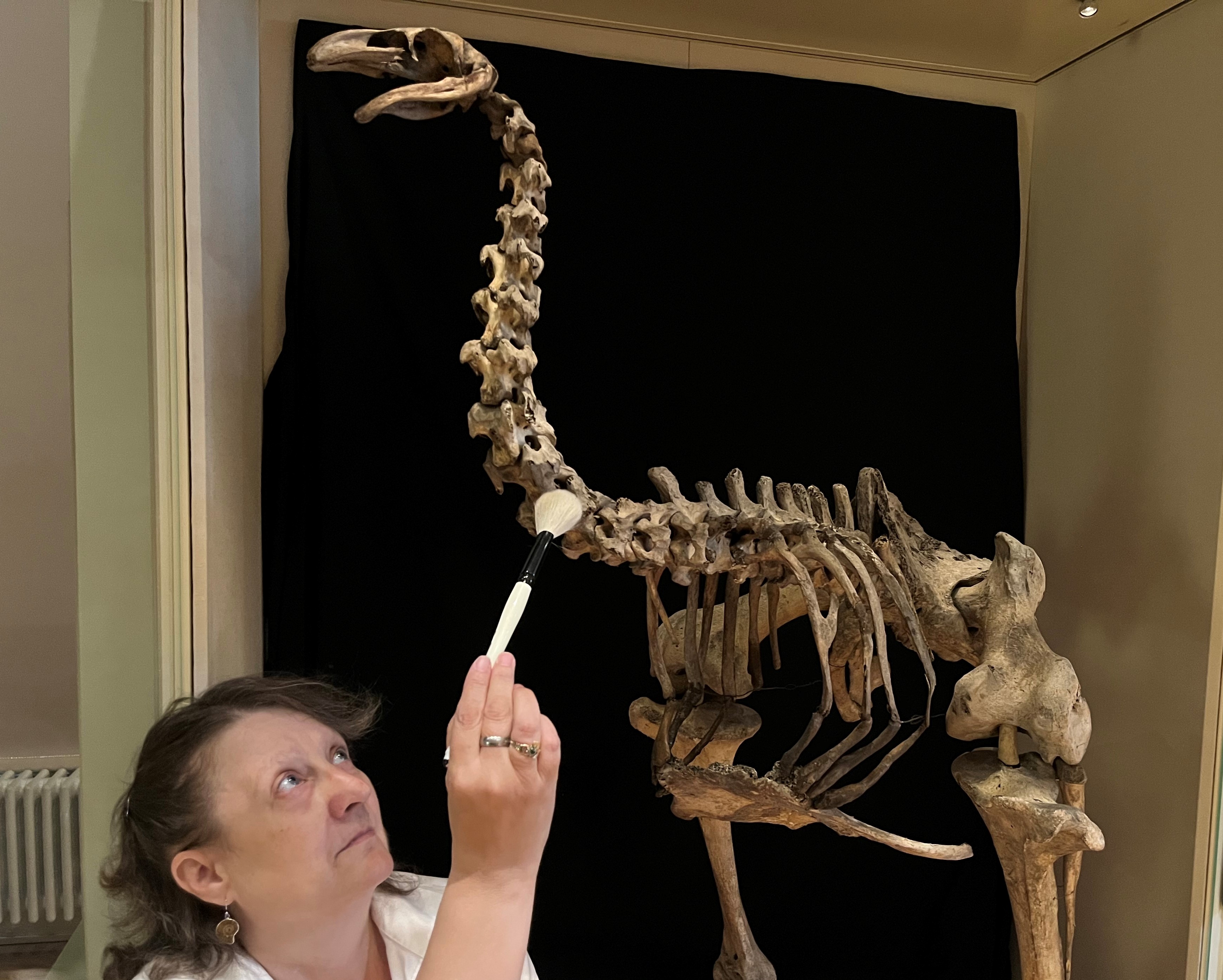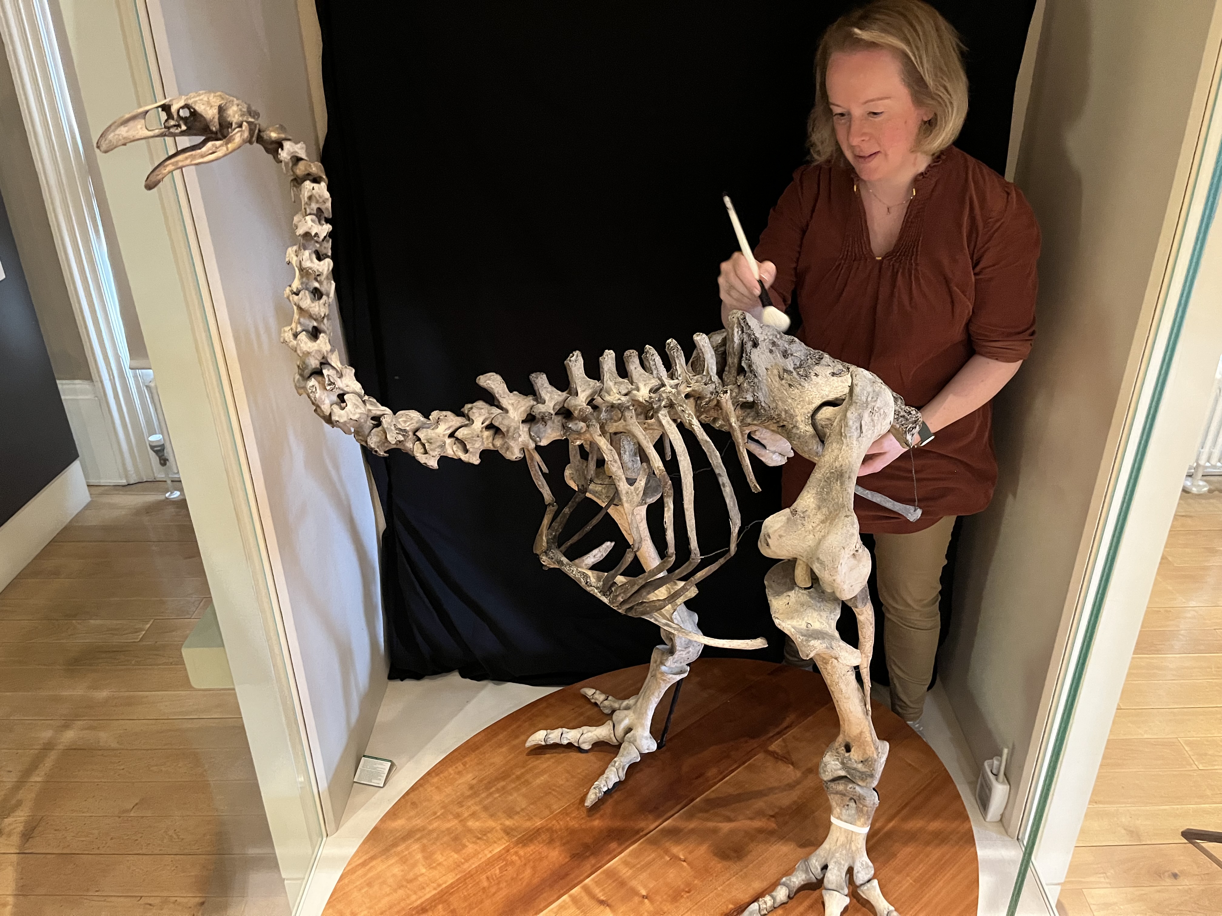 Clare Brown, Leeds Museums and Galleries' curator of natural sciences cleans the incredibly rare and complete bones of the heavy-footed moa, a huge flightless bird which once roamed parts of New Zealand. The bones are on display at Leeds City Museum.