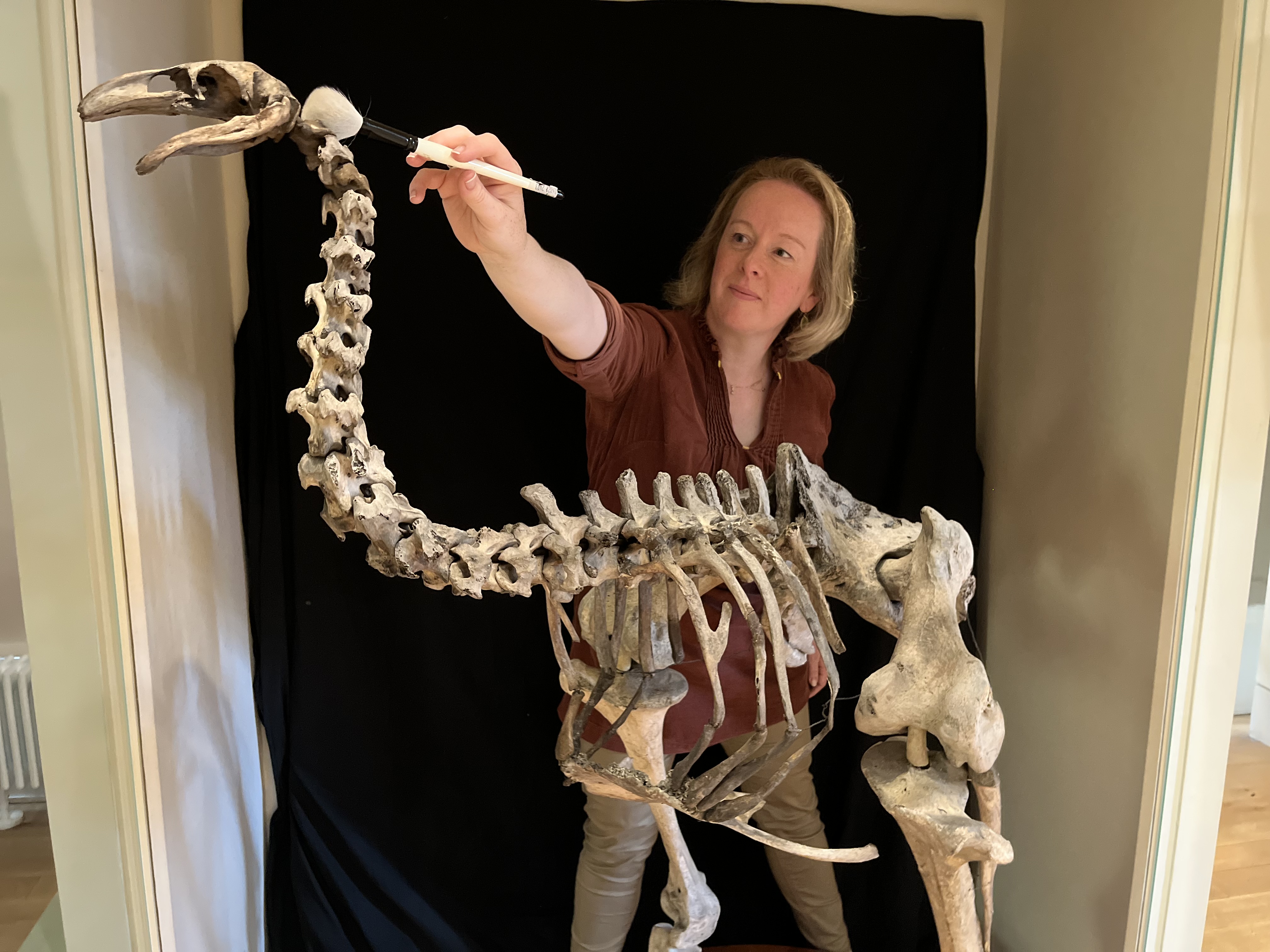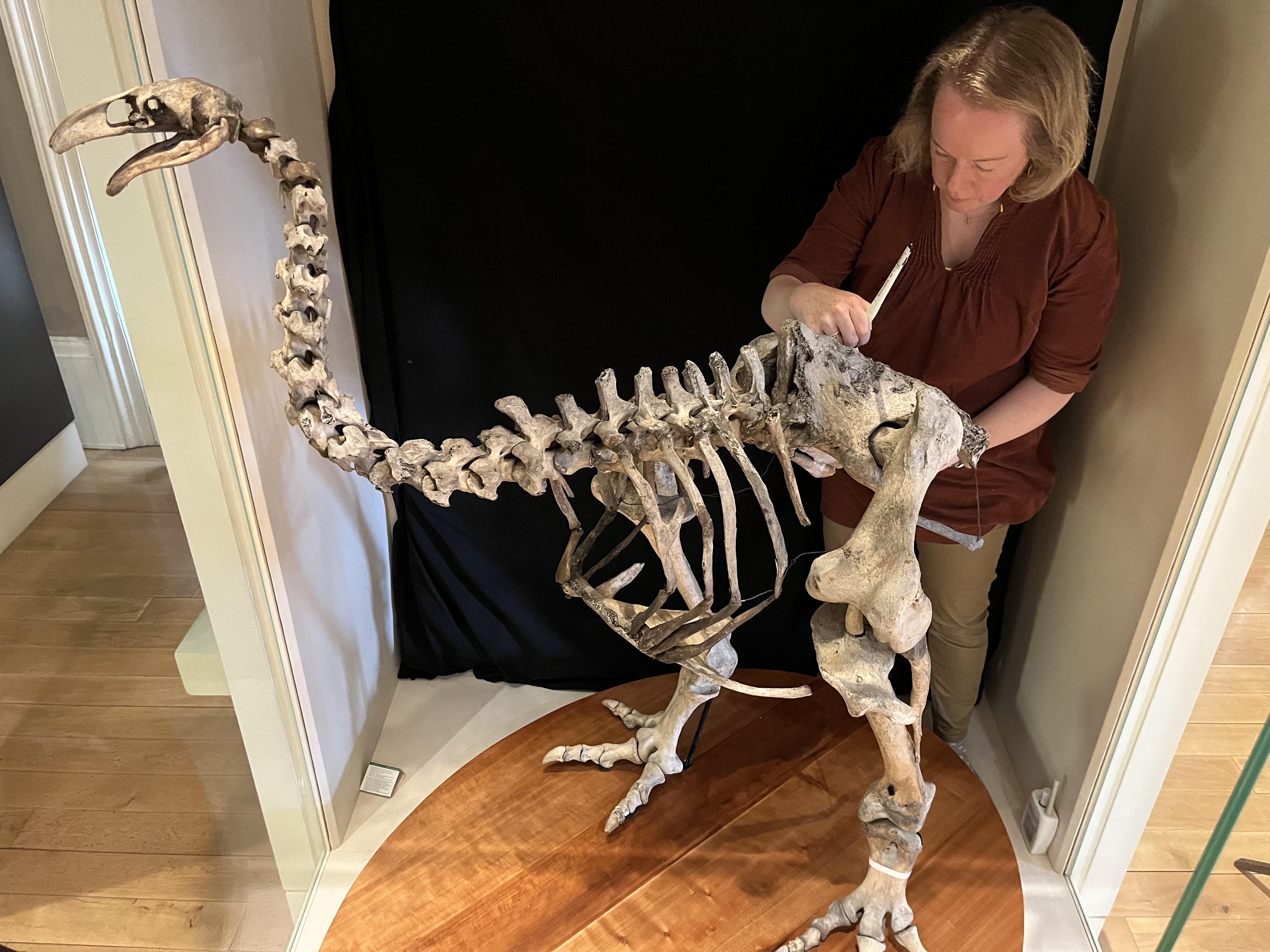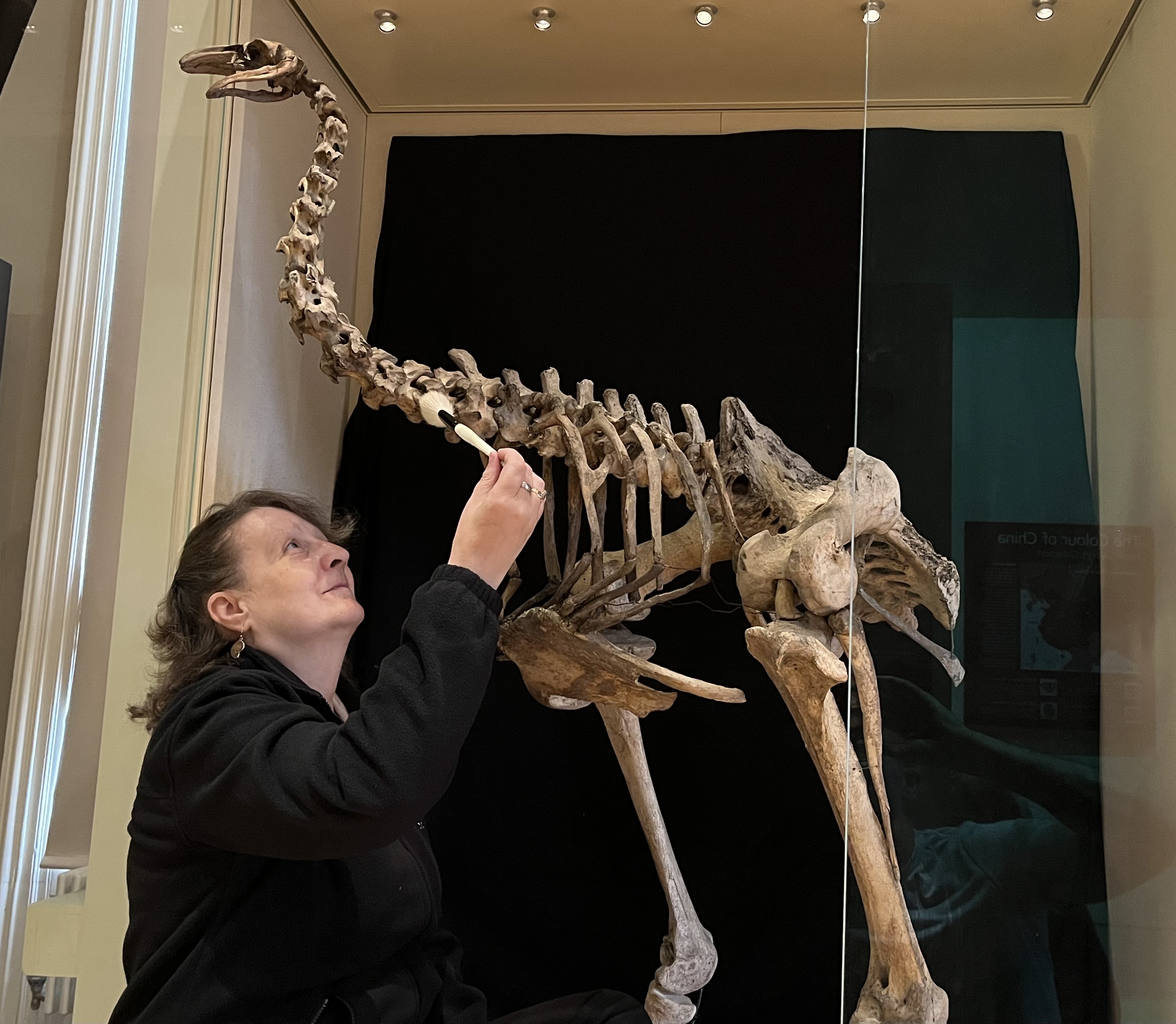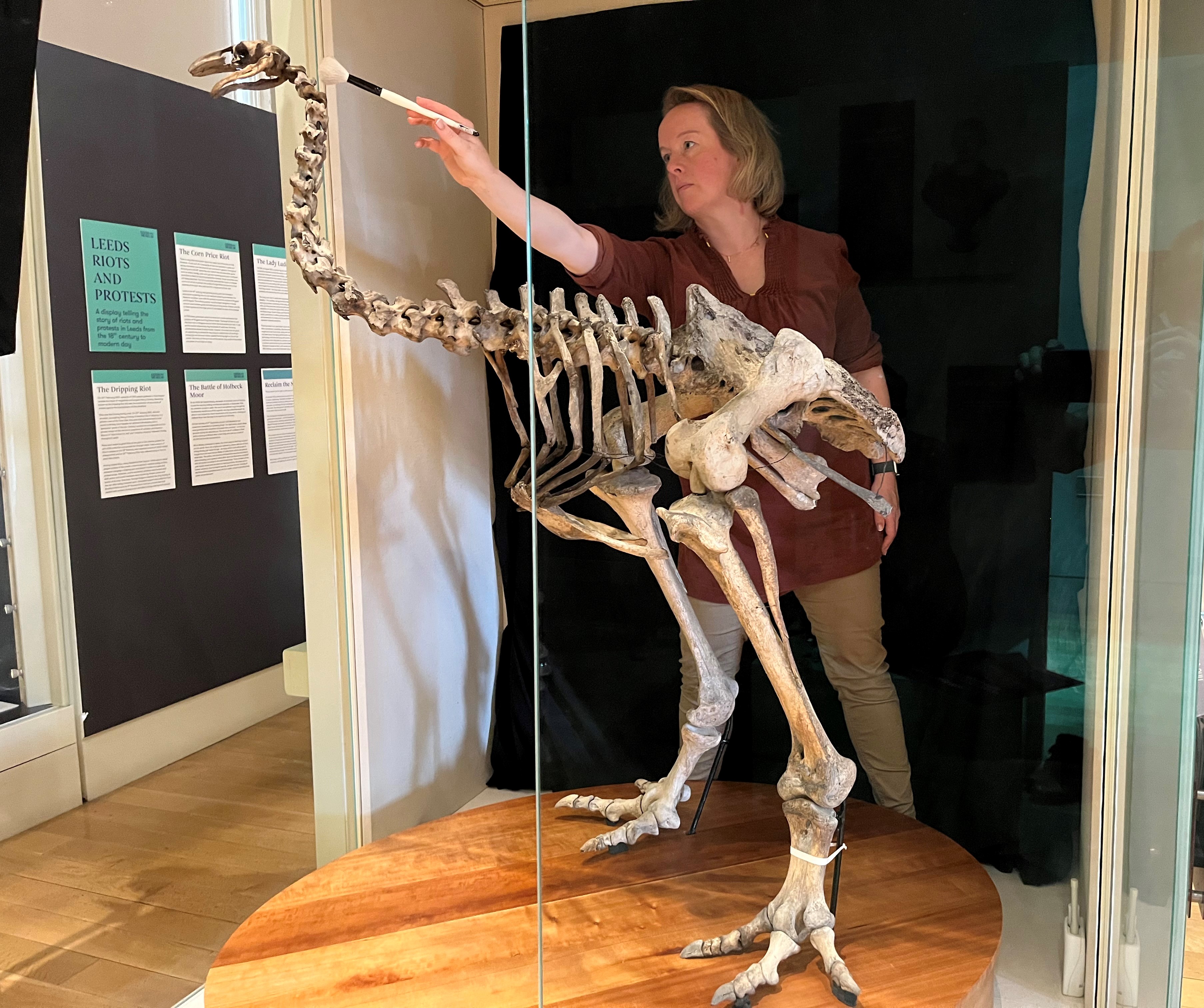 Clare Brown, Leeds Museums and Galleries' curator of natural sciences cleans the incredibly rare and complete bones of the heavy-footed moa, a huge flightless bird which once roamed parts of New Zealand. The bones are on display at Leeds City Museum.