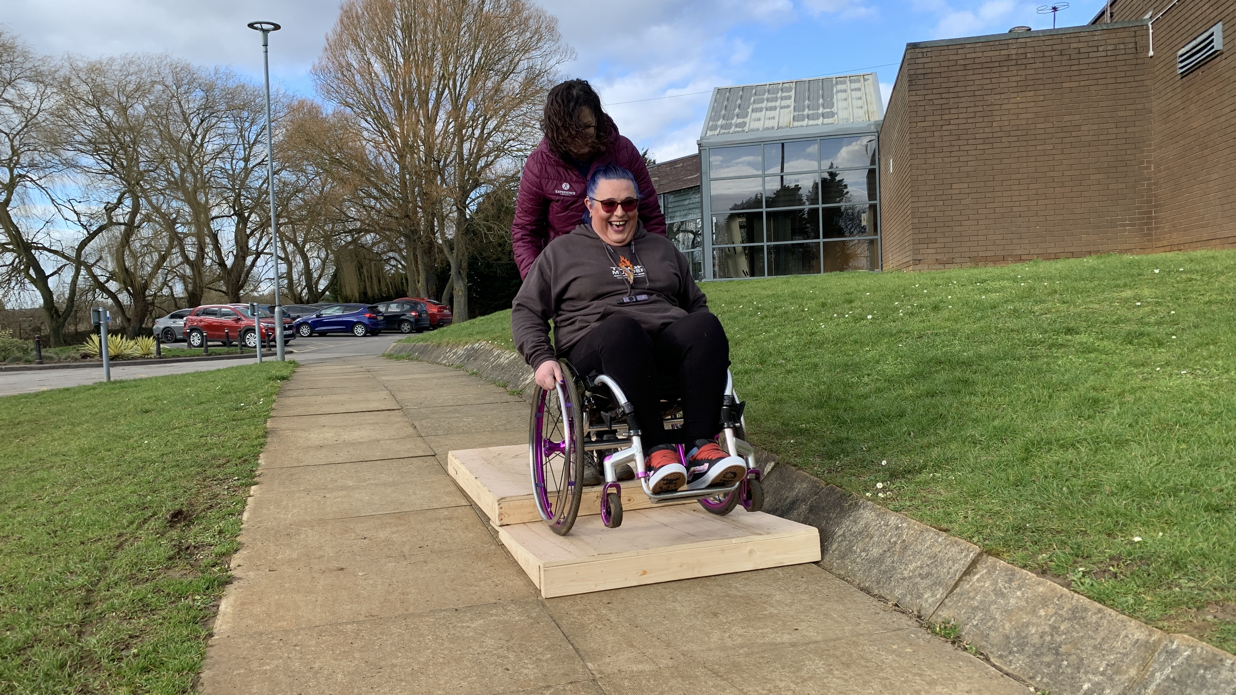 The wheelchair skills course at Fearnville Leisure Centre starts with basic aspects such as appropriate pushing techniques and manoeuvring in tight spaces, and then looks at more complex situations such as negotiating uneven terrain, curbs, cambers and cobbles.
