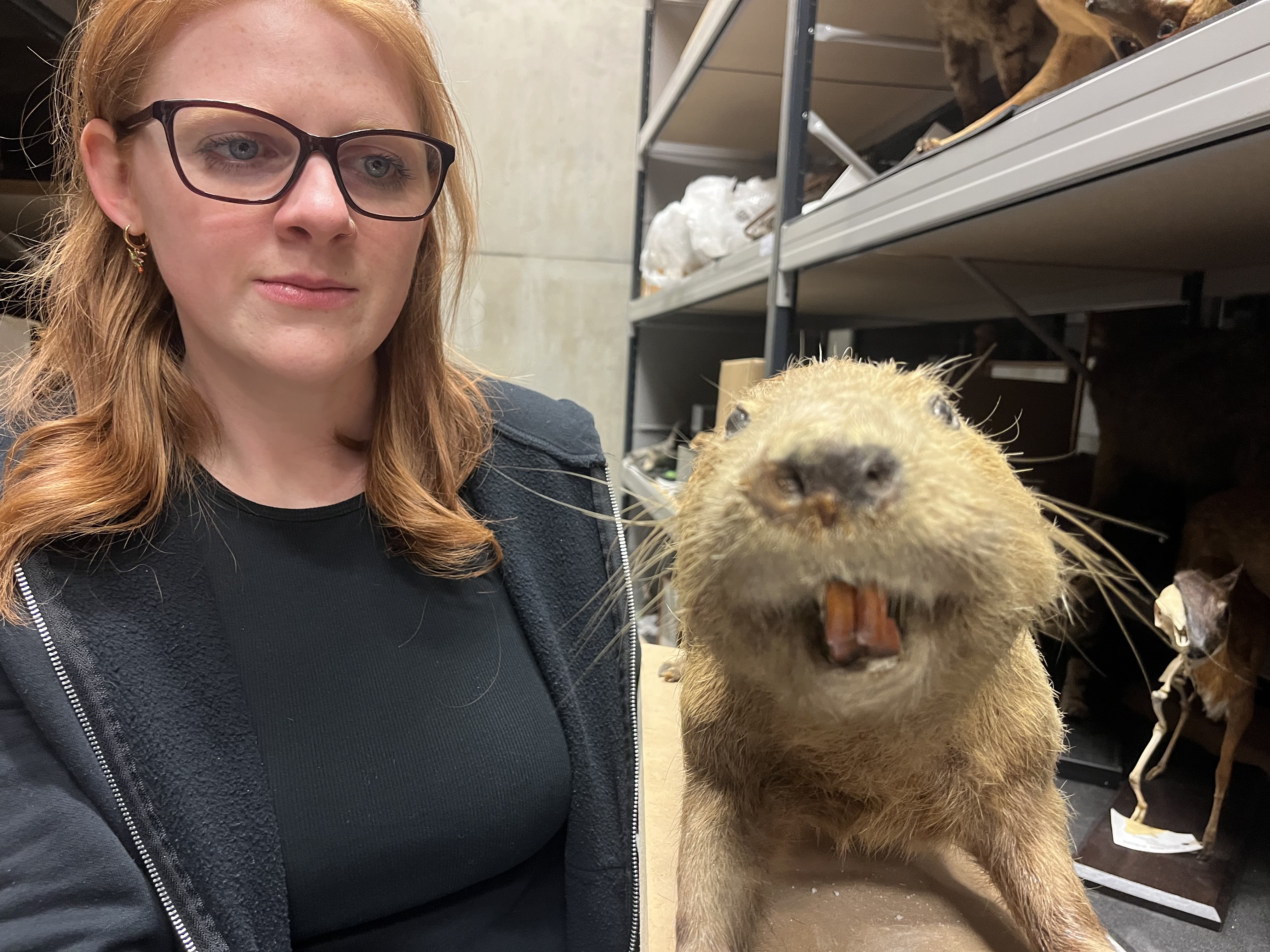 Sarah Burhouse, Leeds Museums and Galleries' curator of natural sciences, looks at a stuffed coypu, part of the vast taxidermy collection at the Leeds Discovery Centre.