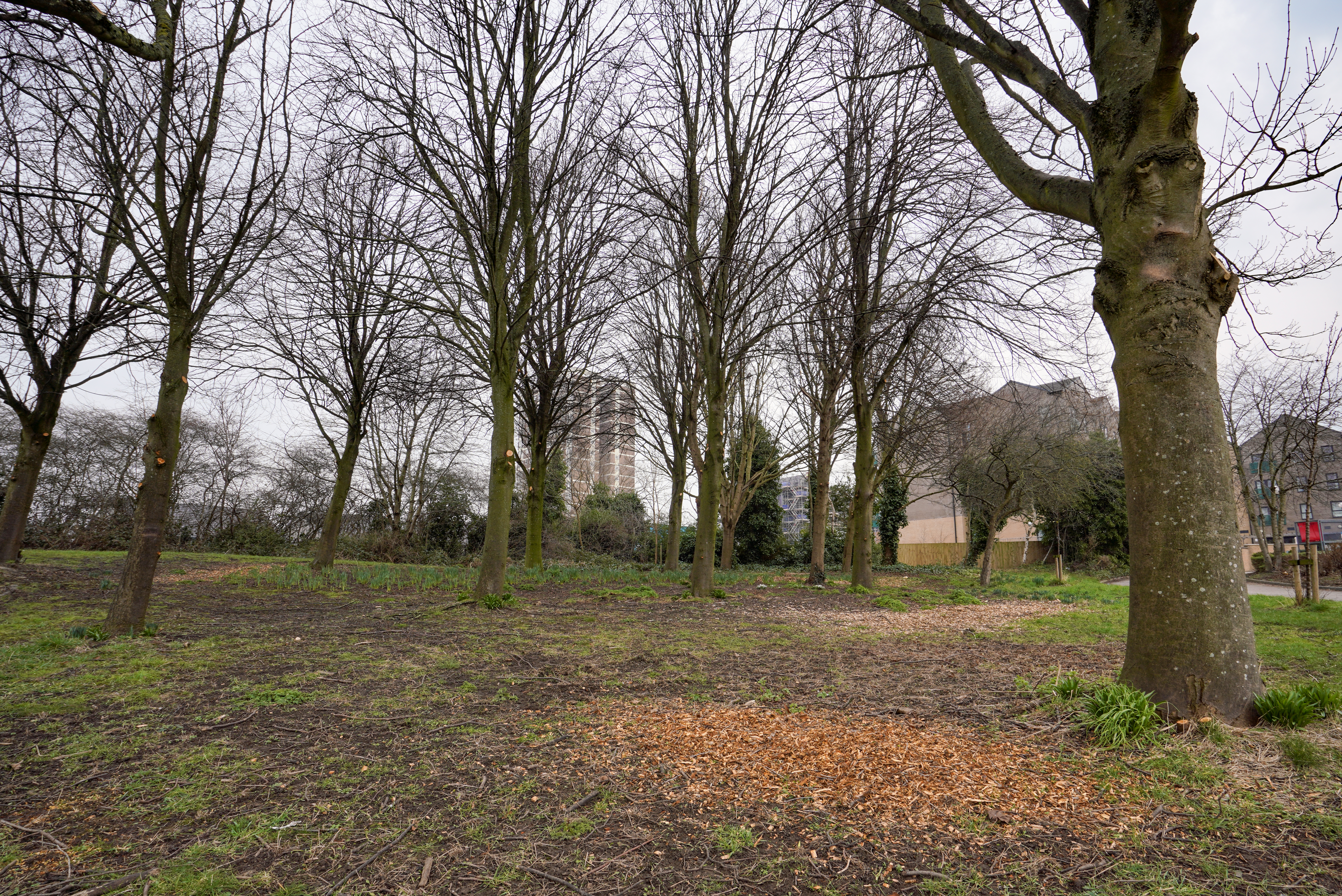 A tidied-up woodland area sitting between Brooklands Avenue and Seacroft Village Green.