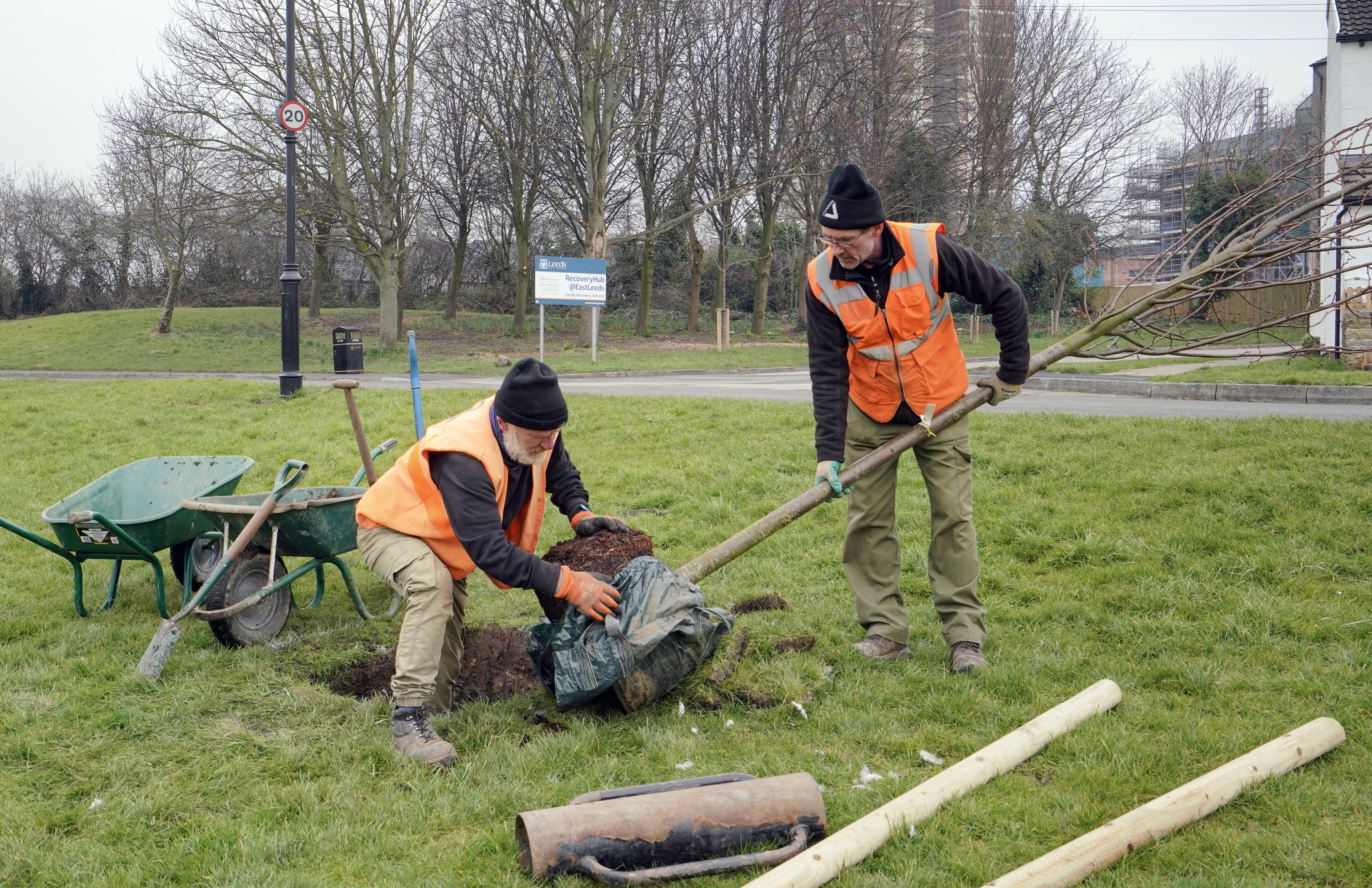 Groundwork Yorkshire team members making improvements to a piece of green space near the Brooklands Avenue housing development in Seacroft.