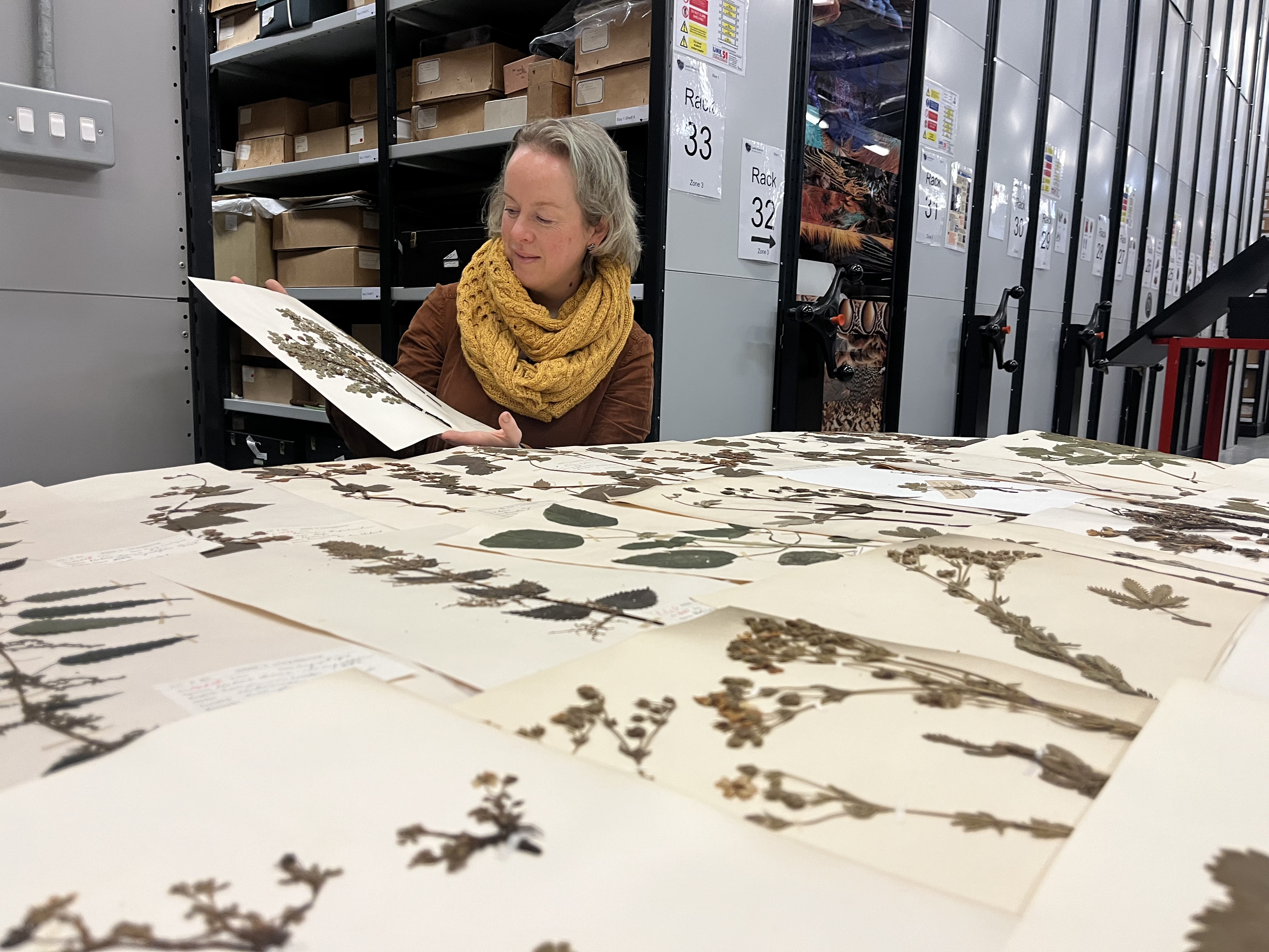 Curator Clare Brown with just a few of the city’s vast collection of precious herbarium sheets was collected by botanists and horticulturalists over the past 200 years, with many of the fragile plants gathered in parks and grassland in east Leeds.
