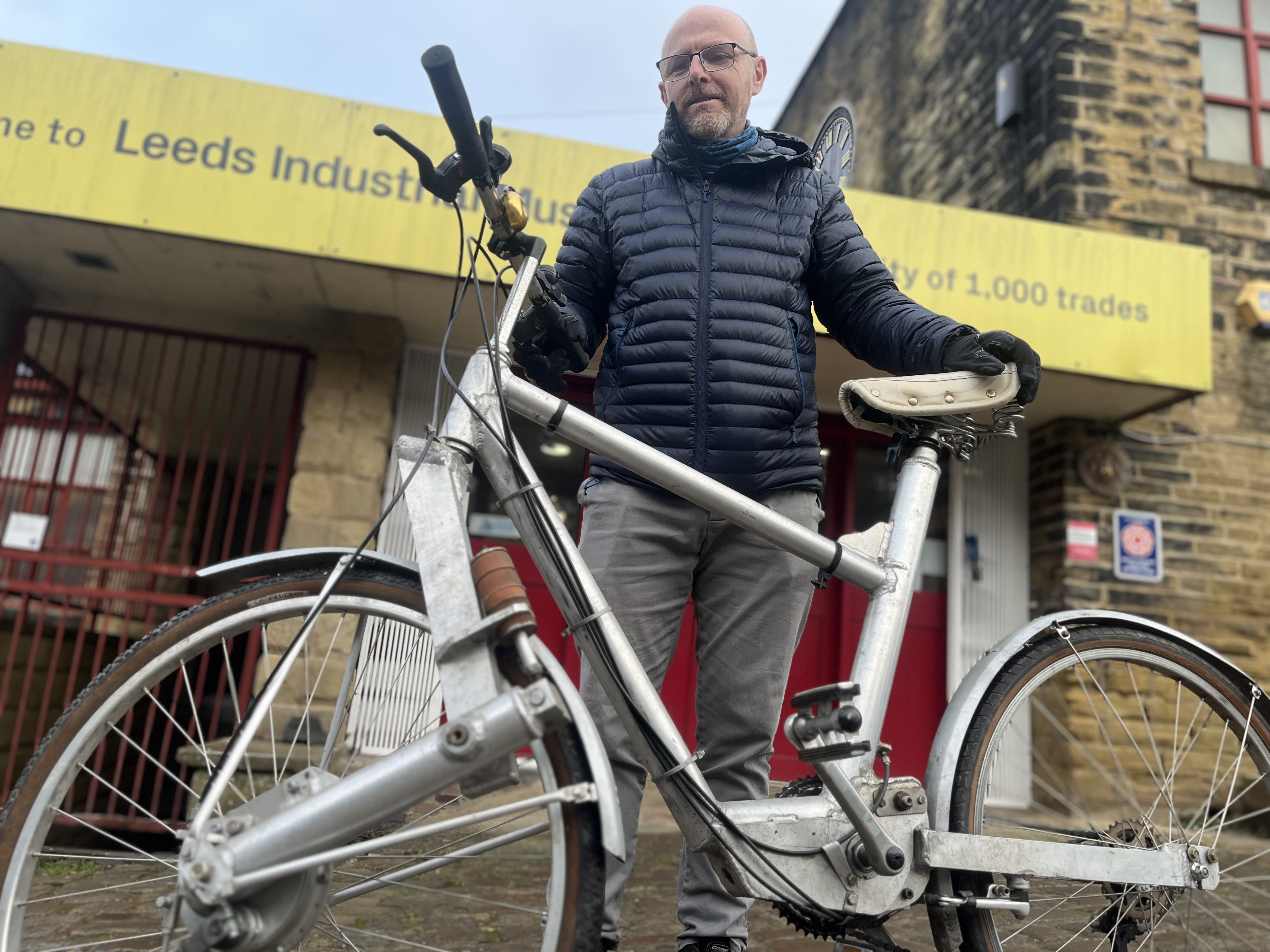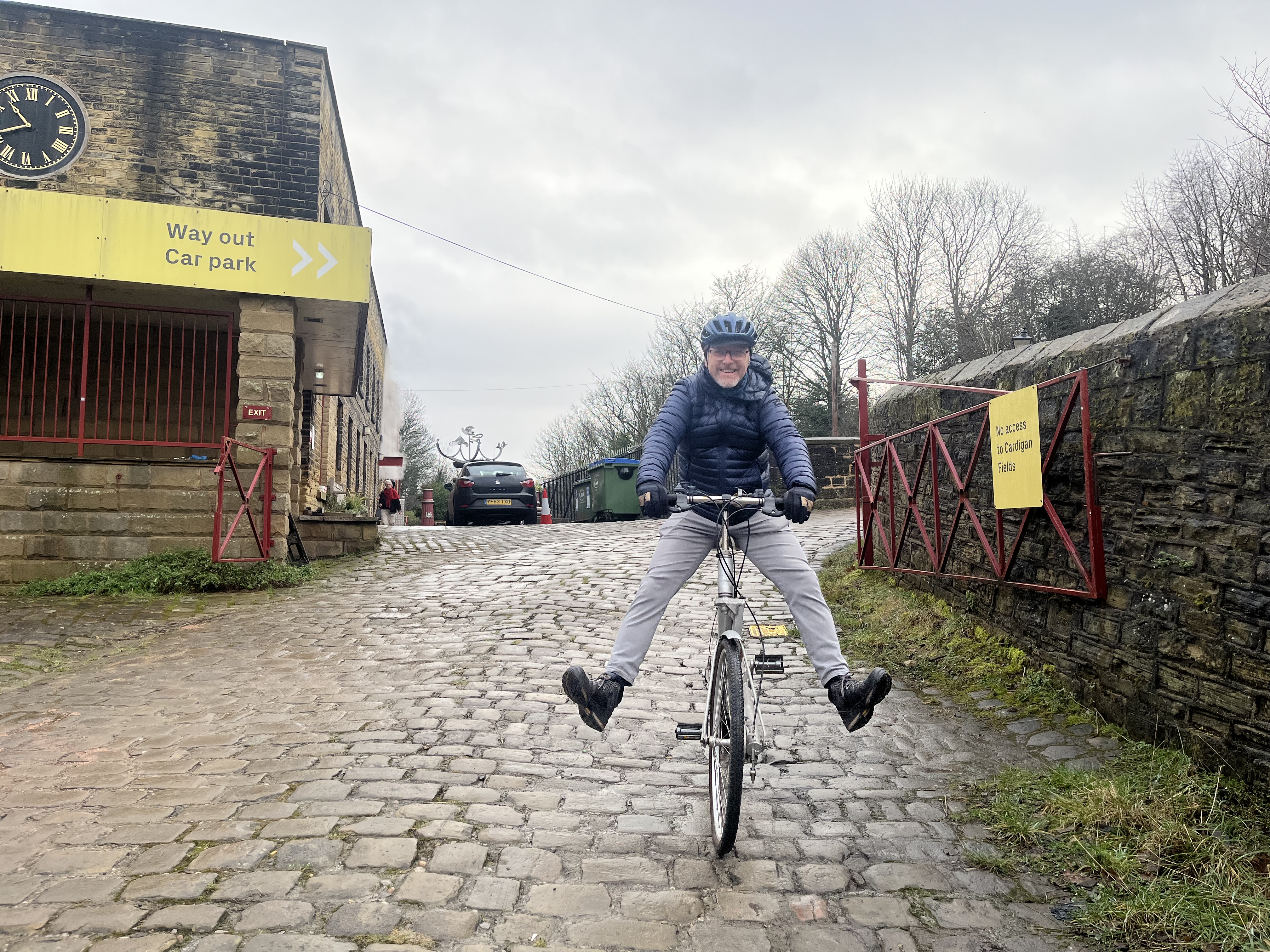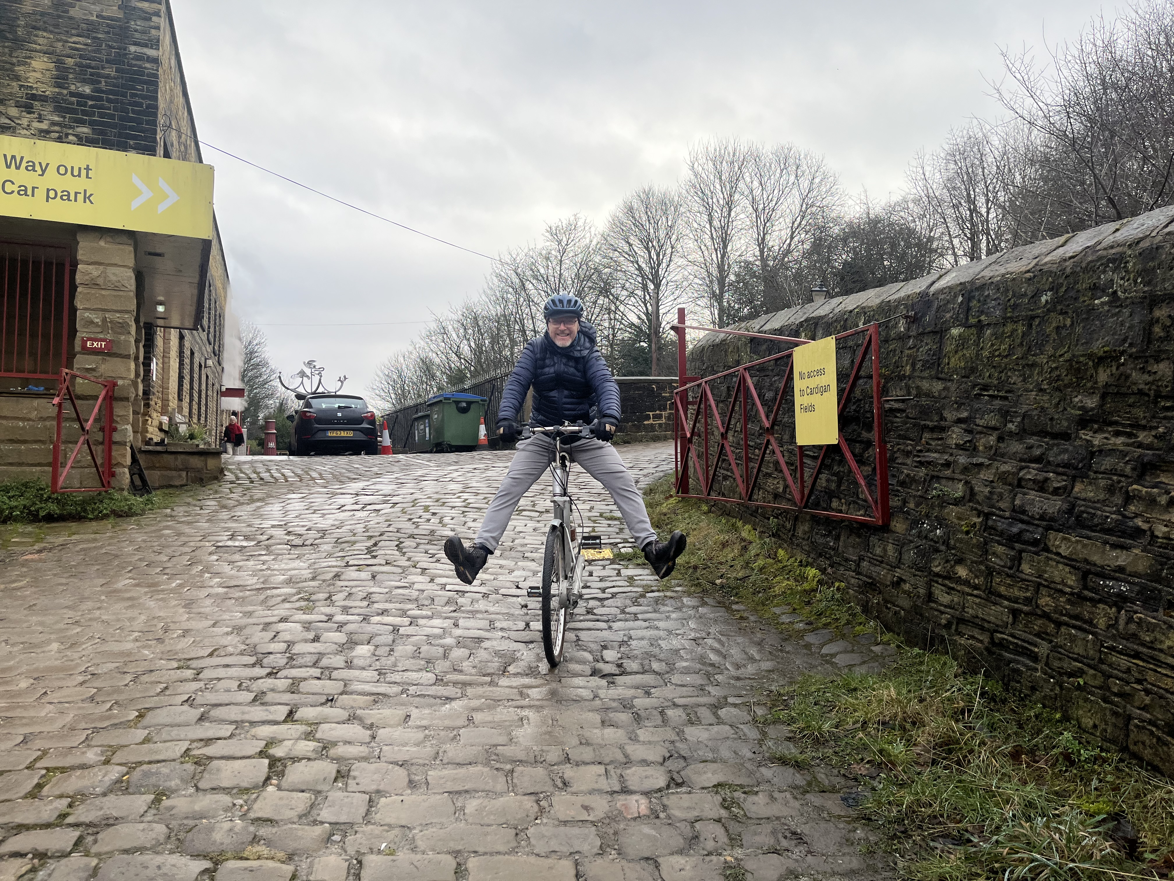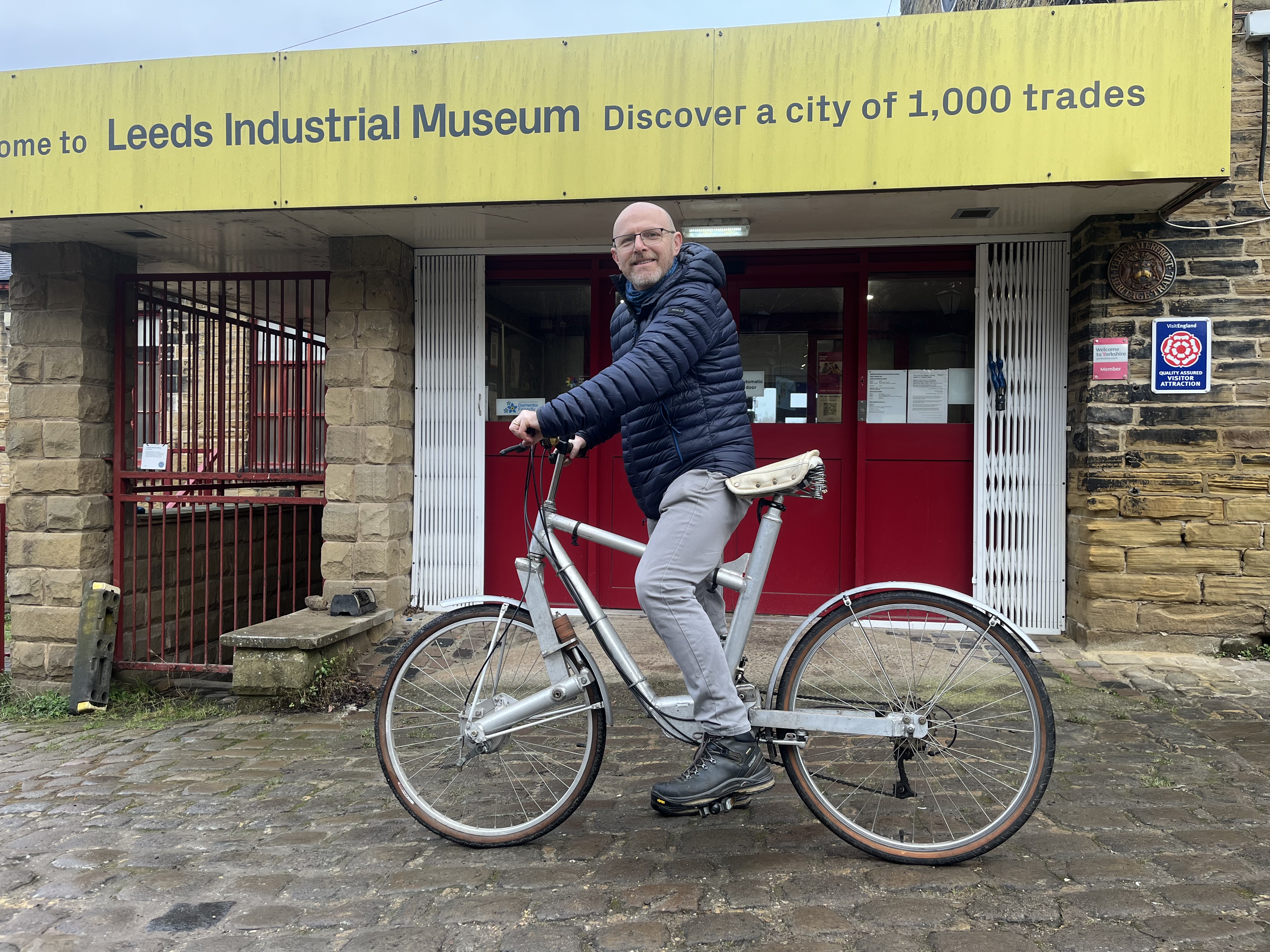 This week his tenacious two-wheeler took on what may have been its biggest challenge yet, when it was road tested on the traditional Victorian cobbles outside Leeds Industrial Museum by curator John McGoldrick (pictured).