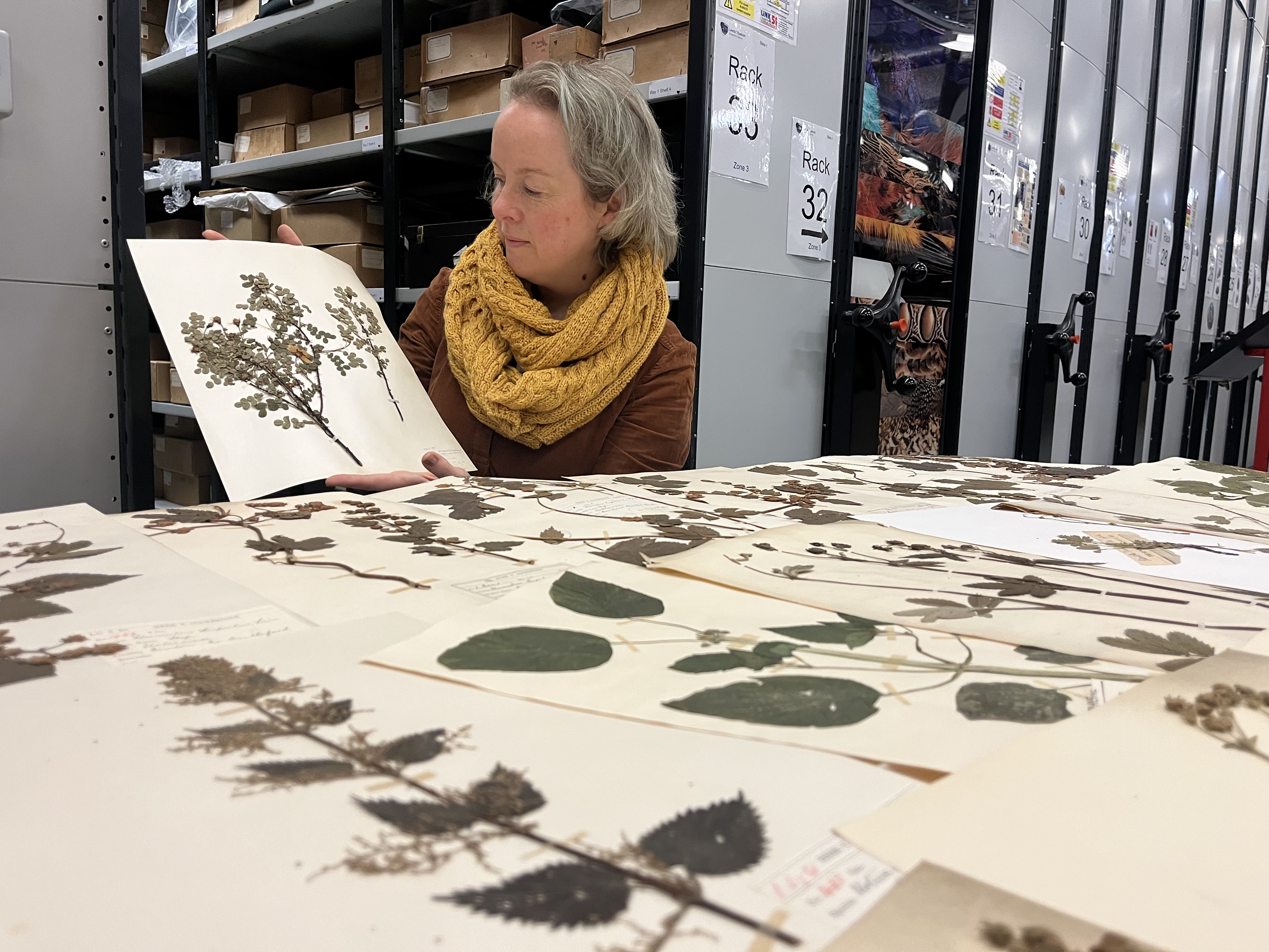 Curator Clare Brown with just a few of the city’s vast collection of precious herbarium sheets was collected by botanists and horticulturalists over the past 200 years, with many of the fragile plants gathered in parks and grassland in east Leeds.