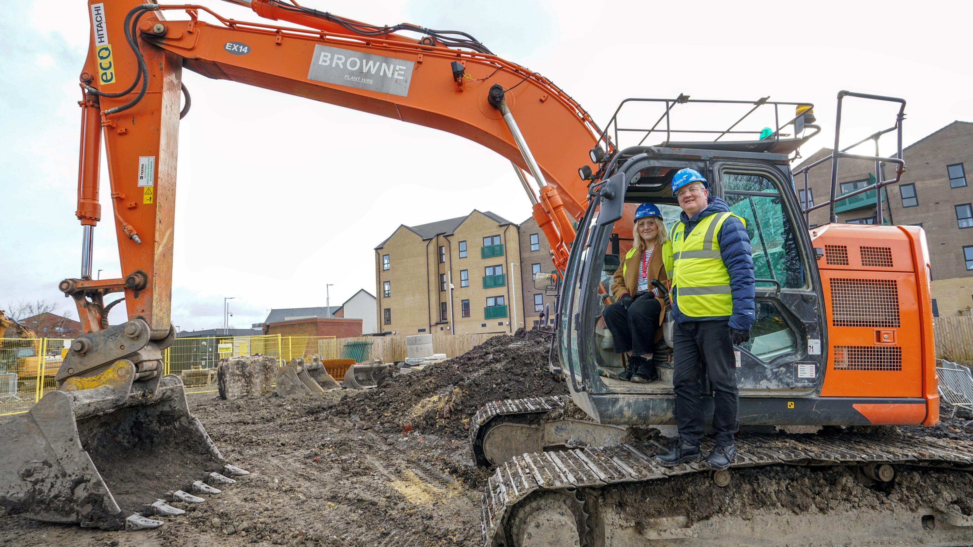 Councillor James Lewis, the leader of Leeds City Council, and Councillor Jess Lennox, the council’s executive member for housing, visit the Brooklands Avenue building site.