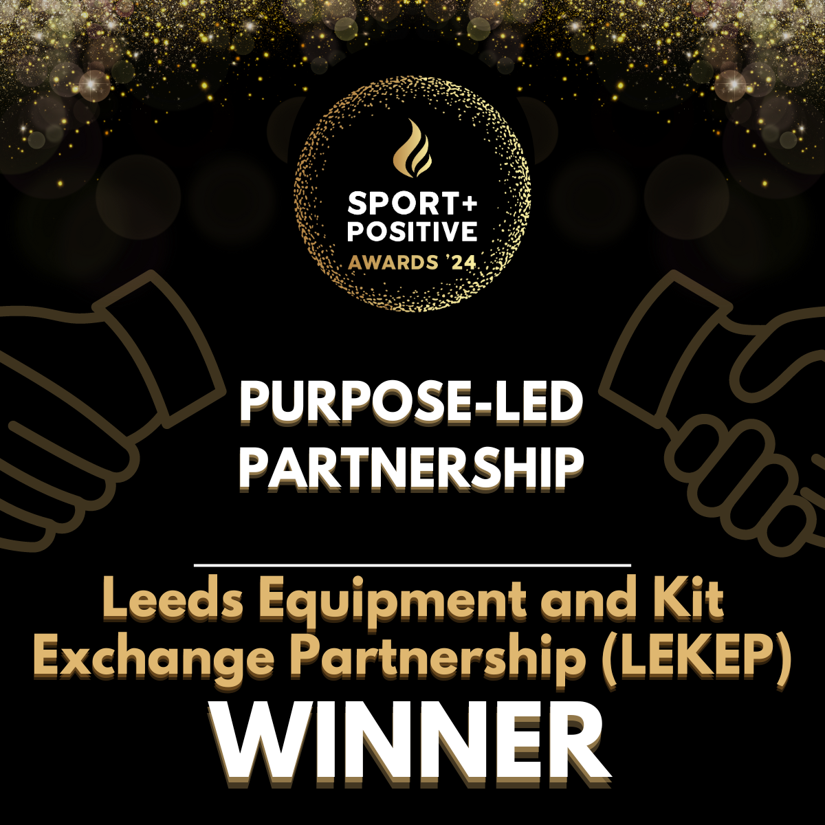 Logo of Sport Positive Awards 2024 and category name of Leeds Equipment and Kit Exchange Partnership as winner of the Purpose-led Partnership Award (image credit Sport Positive Awards/Capturise)