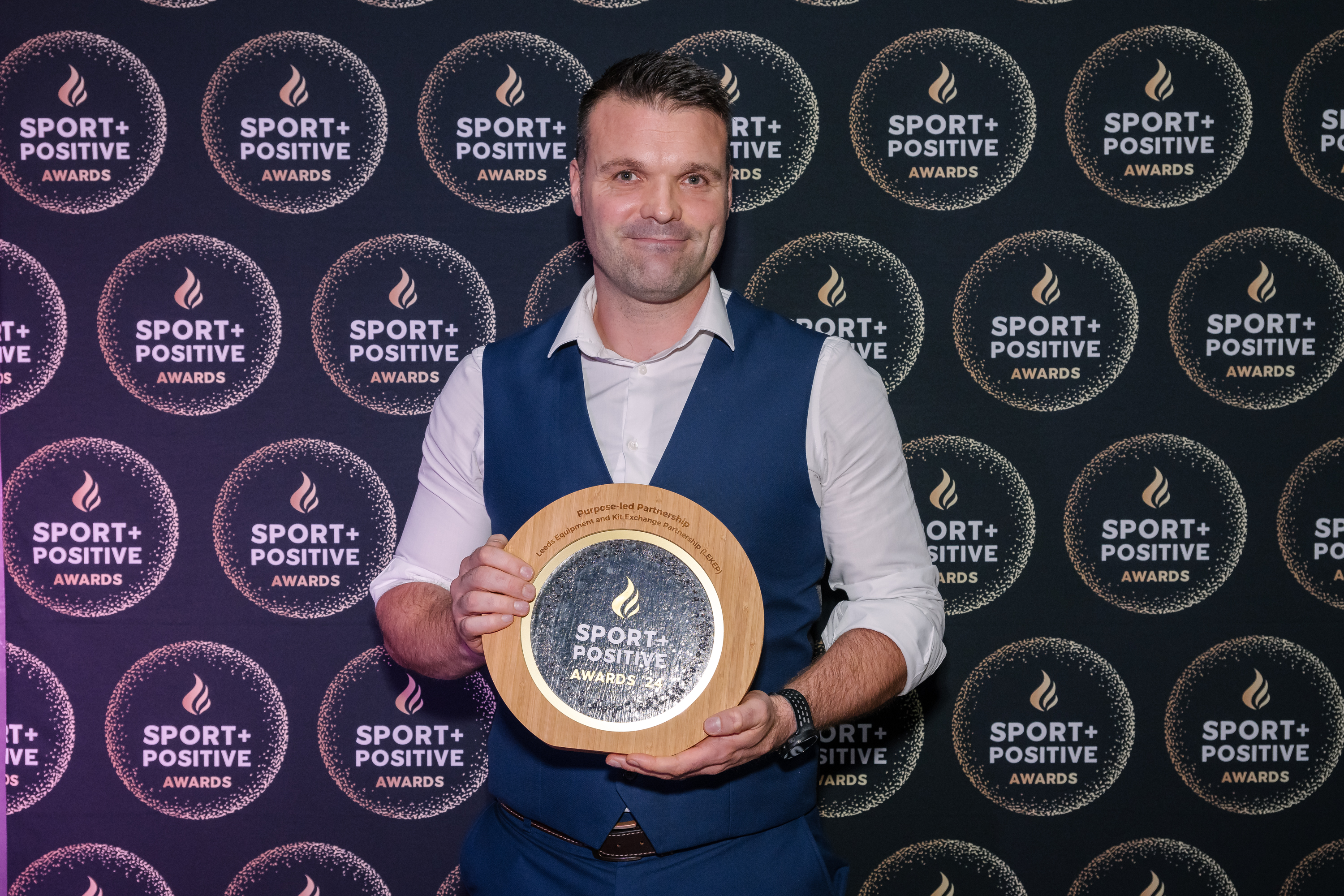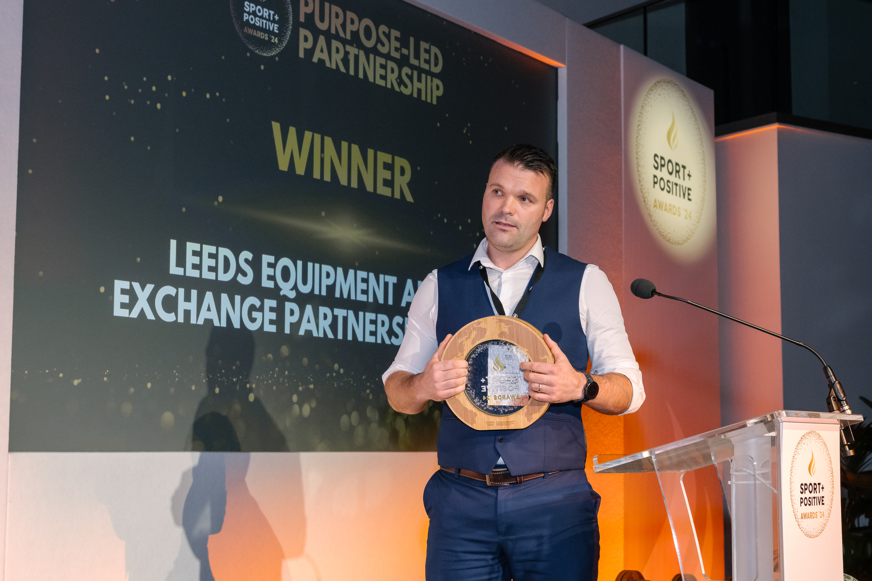Development Manager of Yorkshire Sport Foundation Glenn Holdsworth receiving the Purpose-led Partnership Award at the Sport Positive Awards 2024 (image credit Sport Positive Awards/Capturise)