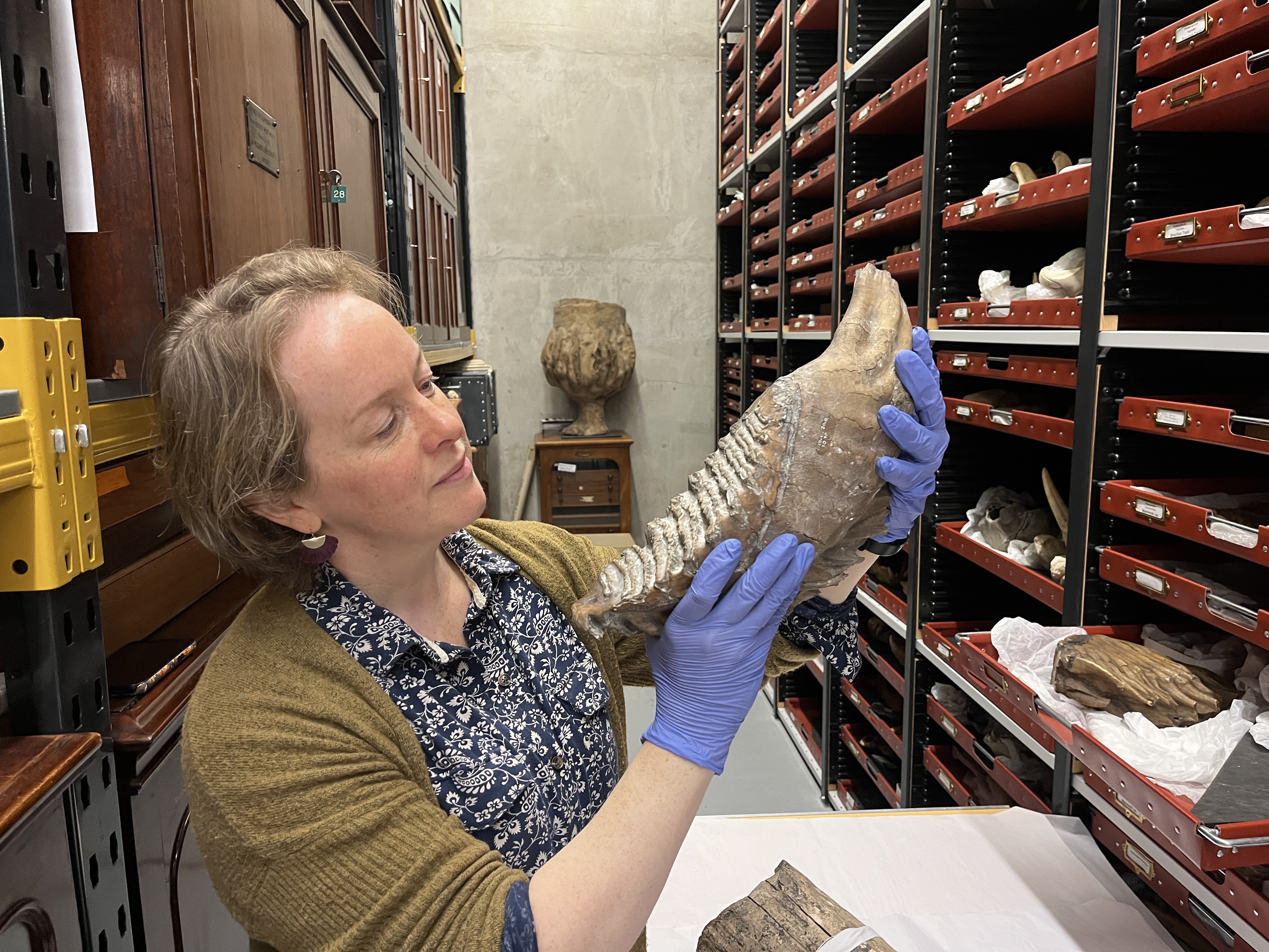 Clare Brown, Leeds Museums and Galleries' curator of natural sciences, with an ancient mammoth tooth which is also stored alongside the mammoth tusk at the Leeds Discover Centre.