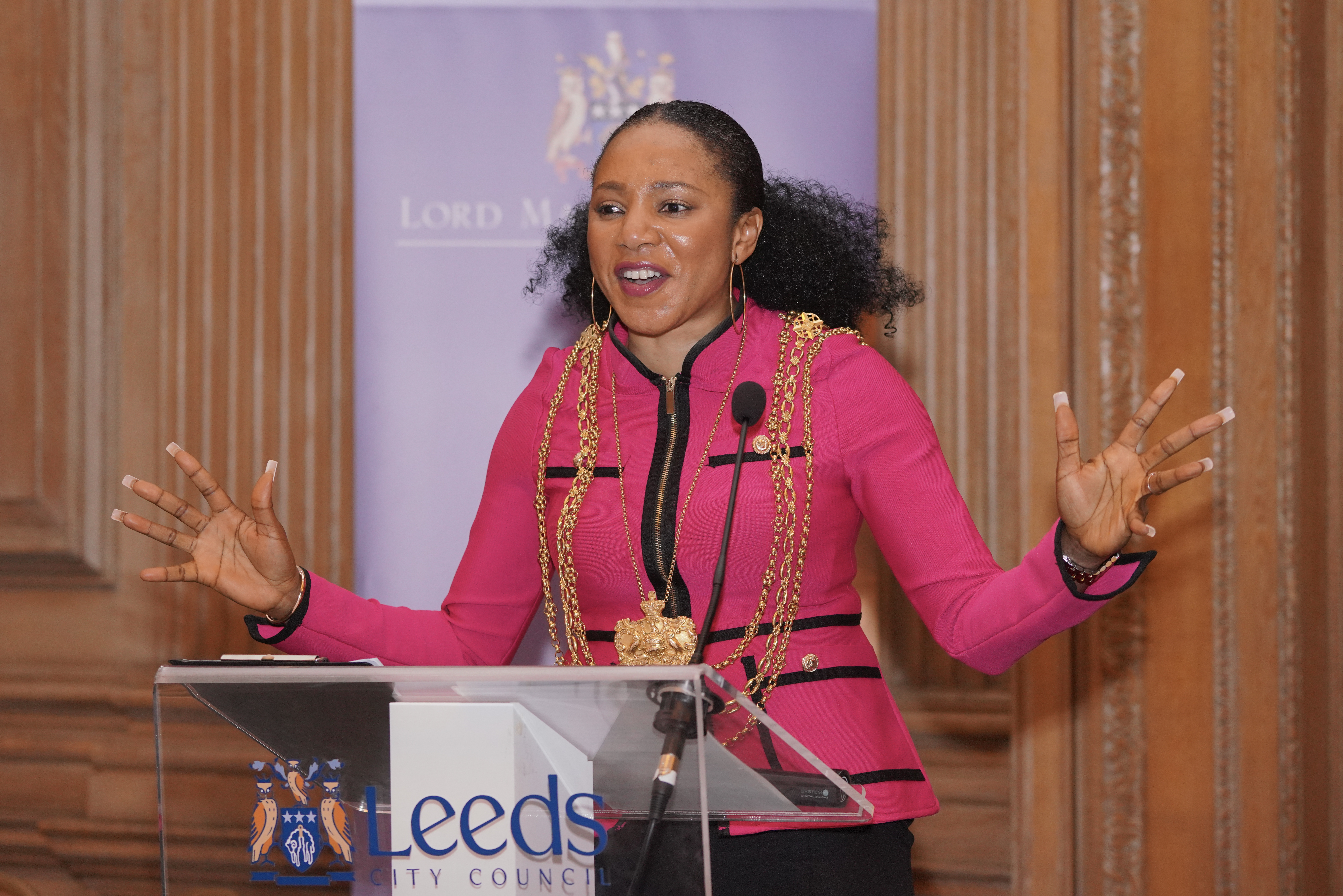 The Lord Mayor of Leeds, Councillor Abigail Marshall Katung, welcomes guests to the civic reception.